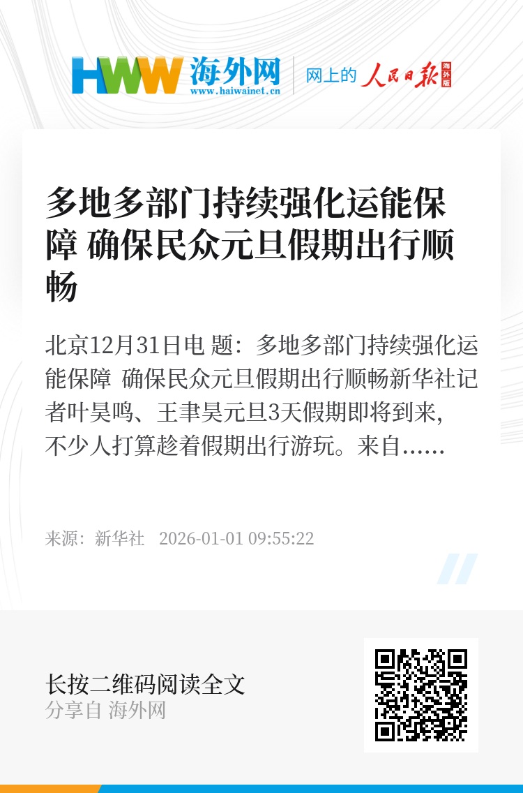 新华社北京12月31日电 题:多地多部门持续强化运能保障 确保民众元旦假期出行顺畅