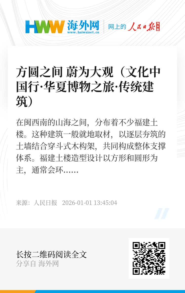 福建土楼,这部独特的建筑史诗,蕴含着根植土地、源于生活的智慧,持续释放着打动人心的力量。