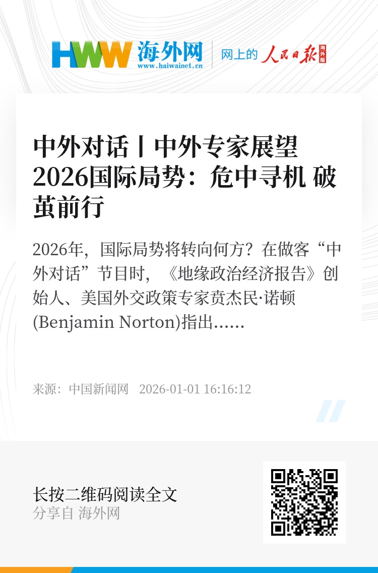 外交学院战略与和平研究中心创建主任、中国人民大学全球治理与发展研究院副院长苏浩也表示,部分右翼倾向国家出现单边主义、贸易保护主义、军国主义思潮,给世界带来极大不确定性。但他同时指出,相信在2026年,国际关系包括国际政治经济可能出现重大变化,危中寻机,“破茧成蝶”—— 破除旧的样式,新的国际秩序将会逐渐显露轮廓。(甘甜 管娜 赵丽)