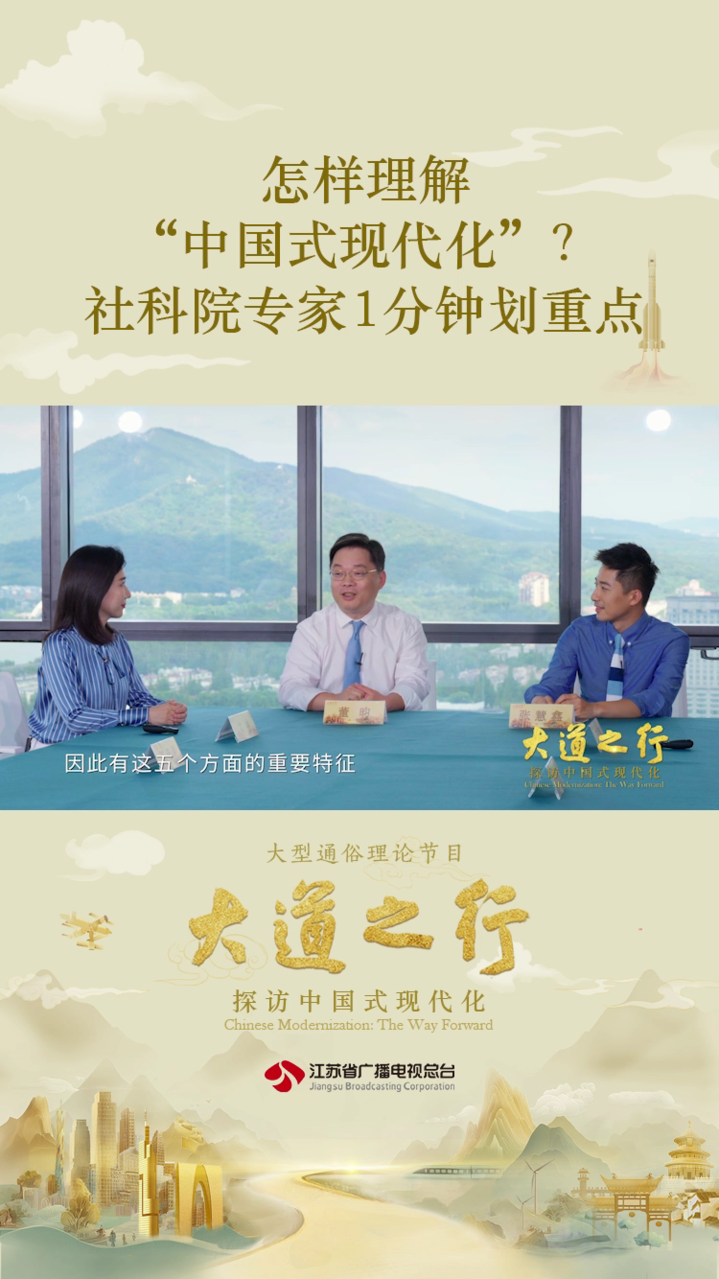 为深入学习贯彻习近平新时代中国特色社会主义思想,展现中国式现代化的鲜明特色和深刻内涵,由江苏省委宣传部指导,江苏广电总台出品的5集大型通俗理论节目《大道之行:探访中国式现代化》于12月30日21:20起在江苏卫视开播,并同步上线荔枝新闻、inJiangsu我苏、ai荔枝等平台。节目以习近平新时代中国特色社会主义思想为根本指引,紧密围绕党的二十届四中全会关于“十五五”规划的战略部署,聚焦“中国式现代化”这一核心主题,立足中国式现代化五个方面的中国特色,从国际与国内、历史与现实、理论与实践等多重维度展开系统解读,全方位勾勒中国式现代化的壮丽图景。