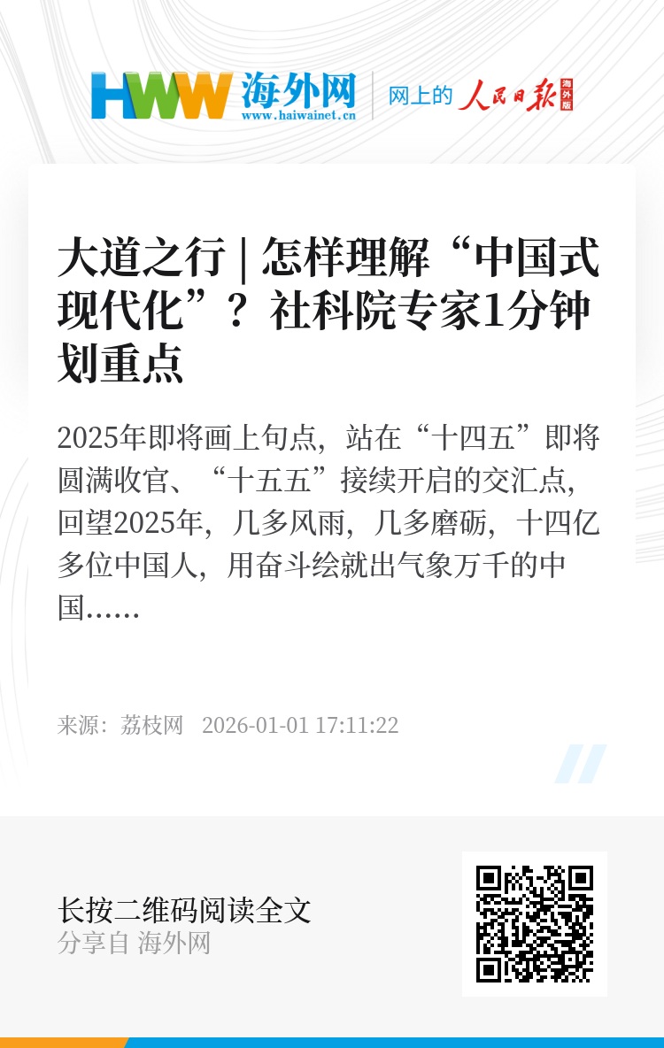 中国式现代化的新征程上,每一个人都是主角,每一份付出都弥足珍贵,每一束光芒都熠熠生辉。什么是中国式现代化?我们如何实现中国式现代化?它将带我们走向怎样的未来?又将如何影响每一个普通人的生活?中国社会科学院研究员董昀用1分钟勾画重点: