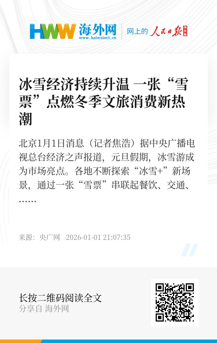 央广网北京1月1日消息(记者焦浩)据中央广播电视总台经济之声报道,元旦假期,冰雪游成为市场亮点。各地不断探索“冰雪+”新场景,通过一张“雪票”串联起餐饮、交通、住宿、体育运动等,进一步激发大众冰雪消费热情,点燃冬季文旅消费新热潮。