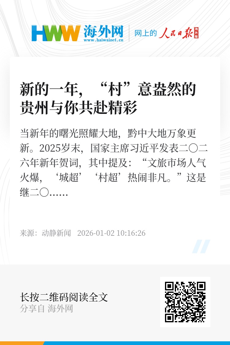 2025岁末,国家主席习近平发表二〇二六年新年贺词,其中提及:“文旅市场人气火爆,‘城超’‘村超’热闹非凡。”这是继二〇二四年新年贺词后,总书记再次为“村超”点赞。这份跨越两年的深切牵挂,为贵州“村”系列乡村文化,注入了更加旺盛的生命力。