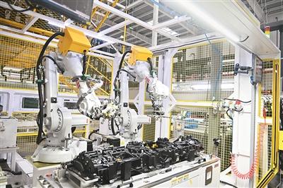 位于重庆市沙坪坝区的华翔汽车内饰系统(重庆)有限公司,生产车间内的智能化设备高速运转,一派忙碌景象。孙凯芳摄(人民视觉)