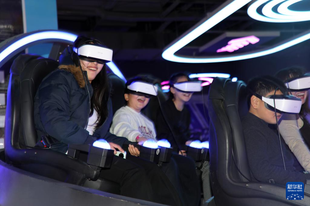 1月2日,在山东省滨州市博兴县一家大型购物中心的游乐场,人们在消费体验游乐项目。新华社发(陈彬摄)