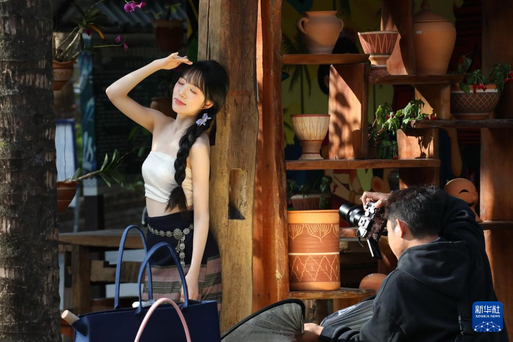 1月2日,游客在云南省景洪市曼弄枫街道曼贺纳古寨拍照。新华社发(李云生摄)