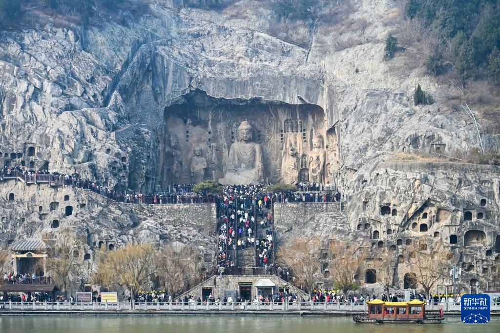 1月2日,游客在河南洛阳龙门石窟景区游览。新华社发(李卫超摄)