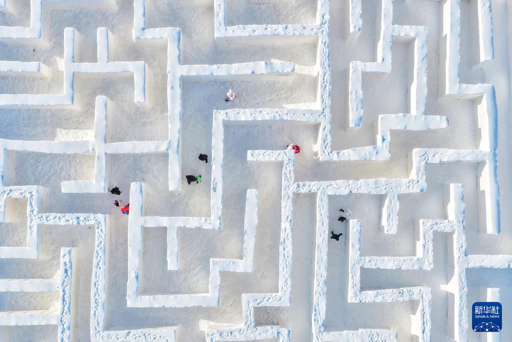 1月2日,在黑龙江省同江市俄罗斯风情园,游人在冰雪迷宫里游玩(无人机照片)。新华社发(刘万平摄)