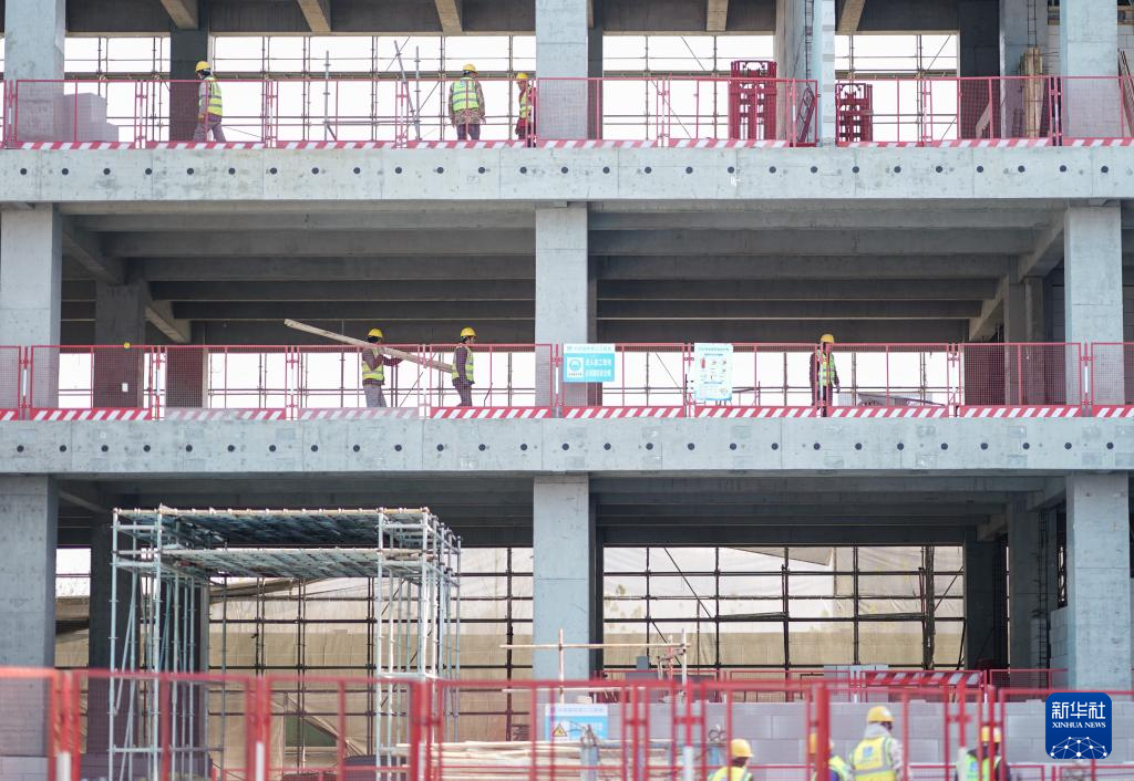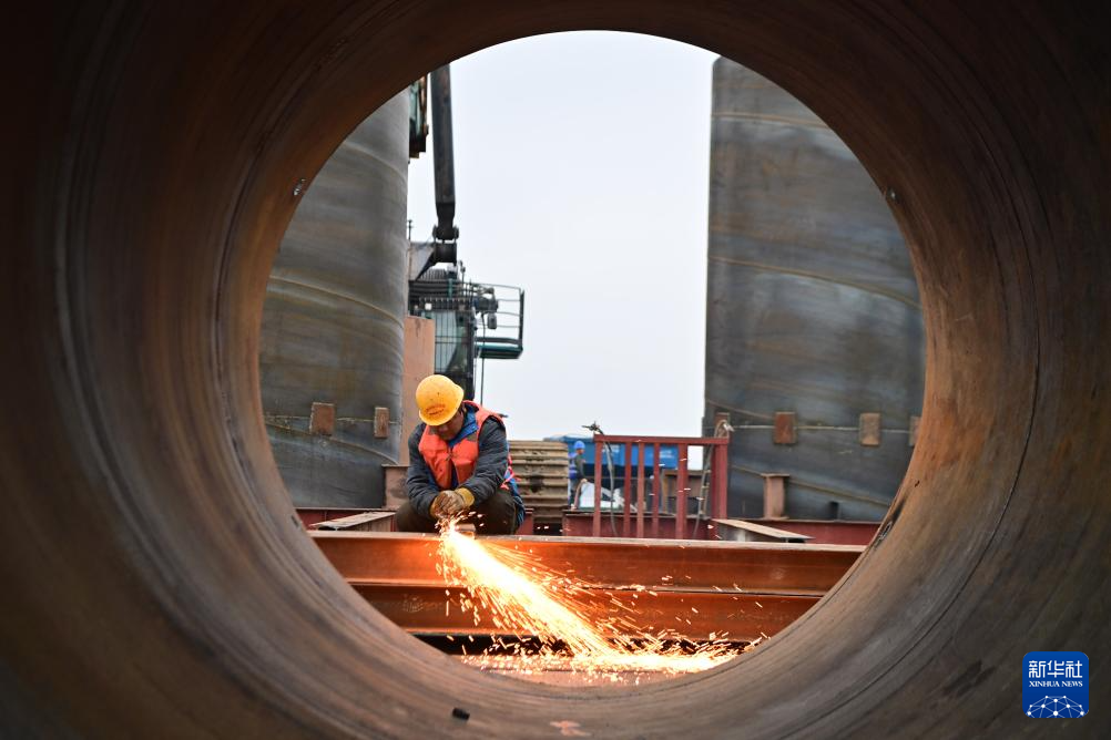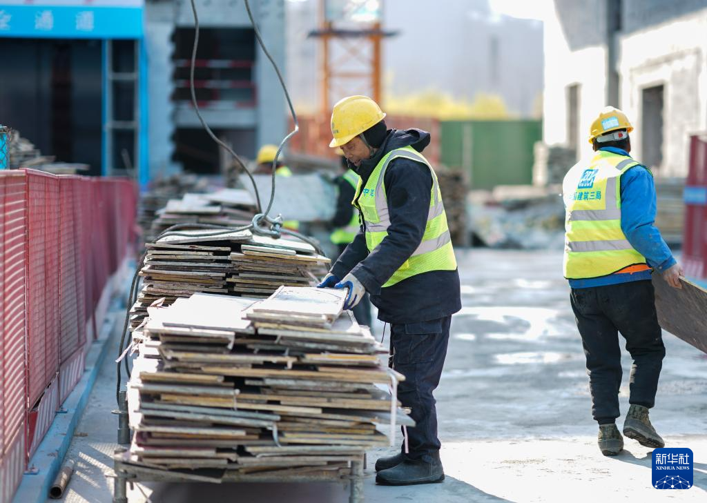 1月2日,工人在位于上海的中建三局一公司灿瑞科技全球芯片研发中心项目工地施工。新华社记者 丁汀 摄