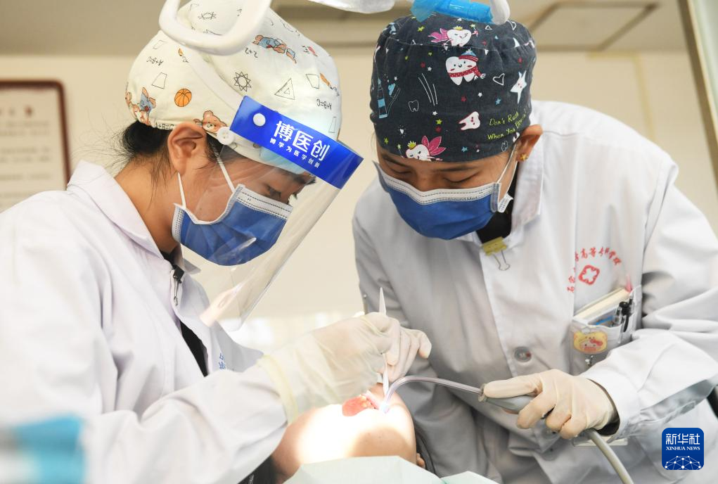 1月2日,在河北省石家庄新乐市一家医院,医生给患者修复牙齿。新华社发(贾敏杰摄)