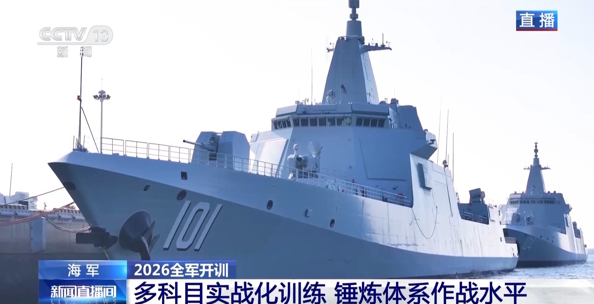 新年伊始,解放军各部队依托新年度训练大纲开展军事训练。在山东青岛某军港,海军驱逐舰某支队官兵整装待发。
