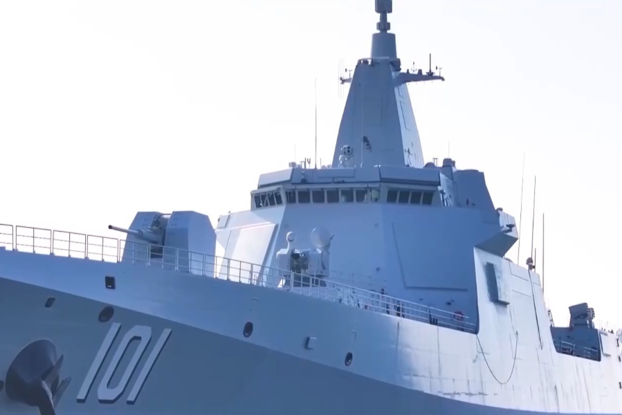 海军南昌舰,舷号101,是我国自主研制的055型导弹驱逐舰首舰,多域感知能力、指挥控制能力、综合攻防能力突出,在编队中担负编队指挥、远程防空、近程反导和区域防空、区域反潜任务,是海军新质作战力量的典型代表,是征战远海大洋的国之重器。2023年12月,南昌舰党委被授予“时代楷模”荣誉称号。2025年,该舰随航母编队展开远海实战化演训,检验了多项战法训法。