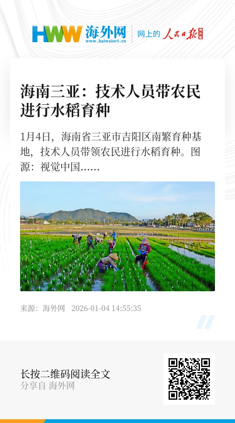 32920935,.海南三亚:技术人员带农民进行水稻育种,.2026-01-04 14:55:35,.204309,.陈亚楠、刘凌