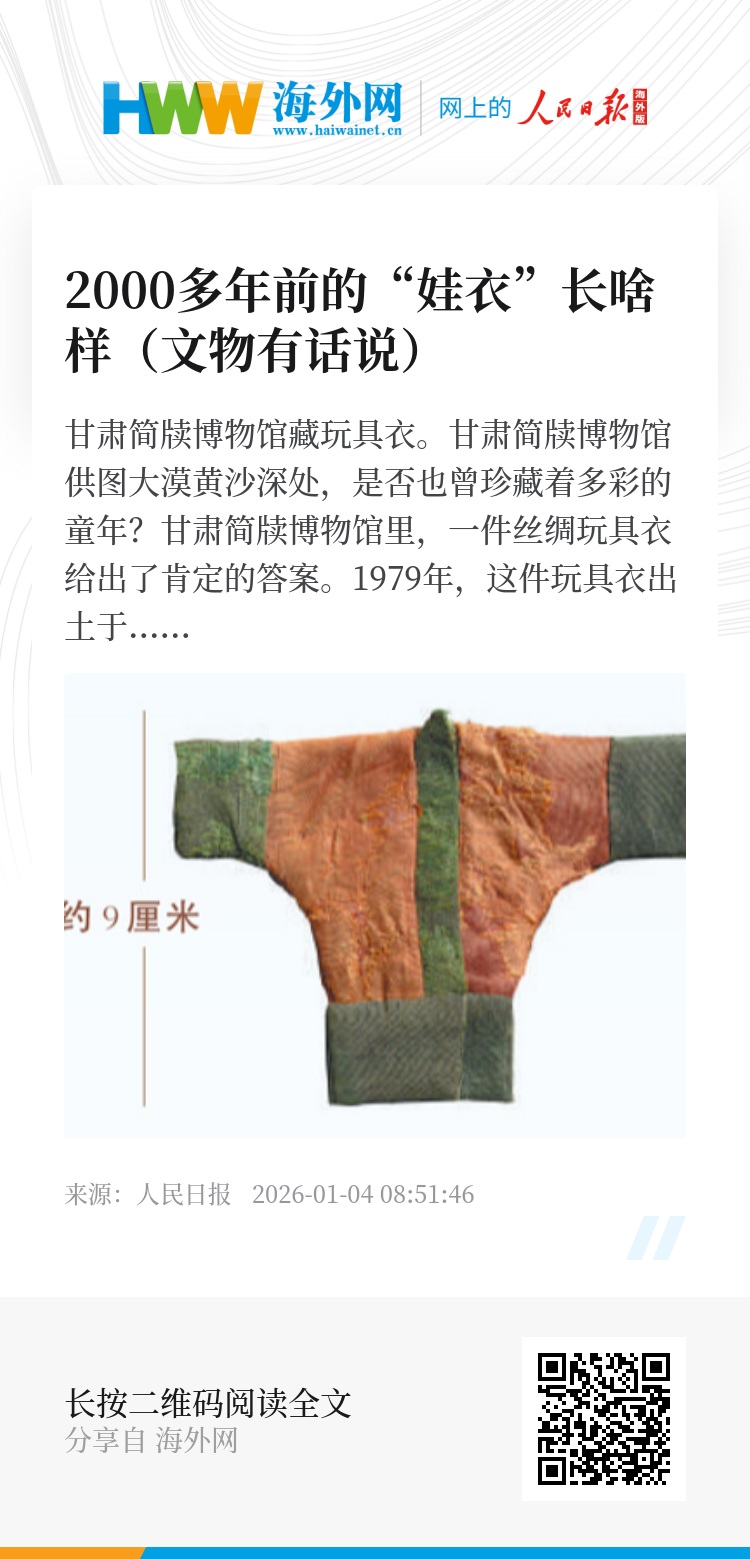 大漠黄沙深处,是否也曾珍藏着多彩的童年?甘肃简牍博物馆里,一件丝绸玩具衣给出了肯定的答案。