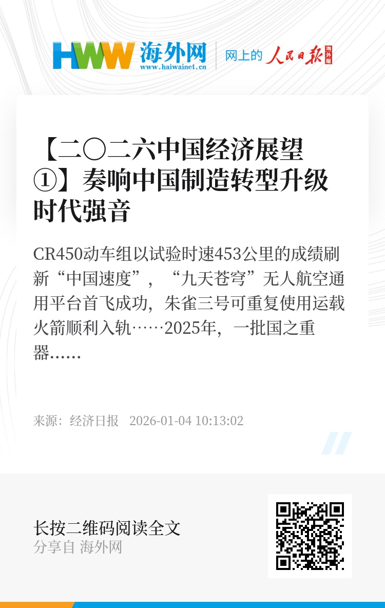 CR450动车组以试验时速453公里的成绩刷新“中国速度”,“九天苍穹”无人航空通用平台首飞成功,朱雀三号可重复使用运载火箭顺利入轨……2025年,一批国之重器惊艳全球,不断擦亮新时代中国制造的金字招牌。