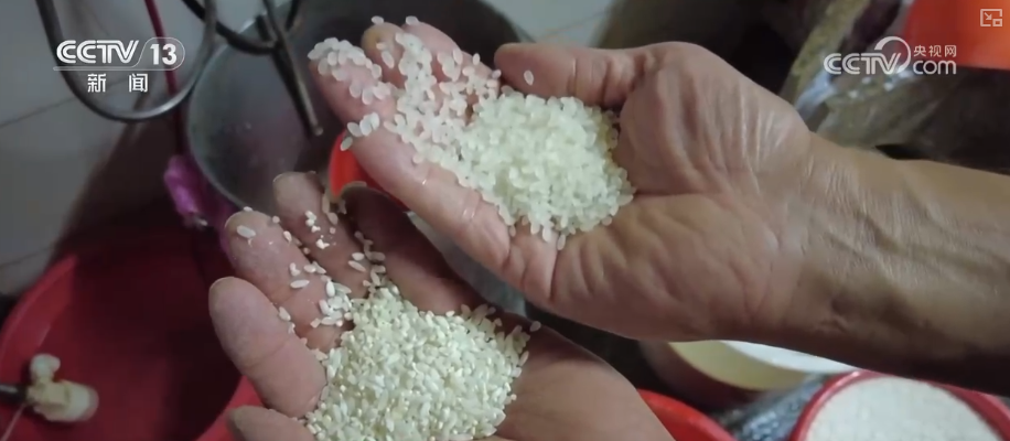 想要肠粉皮爽滑而有弹性,米浆的配比至关重要。这其,中新米提供米香,陈米则负责肠粉皮的韧性。两种米充分洗净后浸泡到米粒一捏即碎的程度,这个过程通常需要4小时。