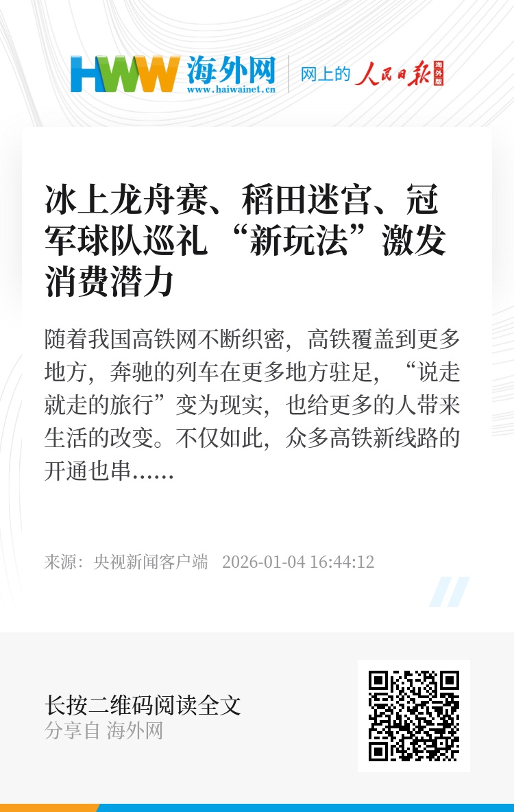 这个假期,旅游市场上消费新场景不断涌现,冰上龙舟赛、稻田迷宫、冠军球队巡礼等一系列特色活动,让传统节日激发出新的消费潜力。“新玩法”满足大家个性化的焕新需求,激发了消费热情。
