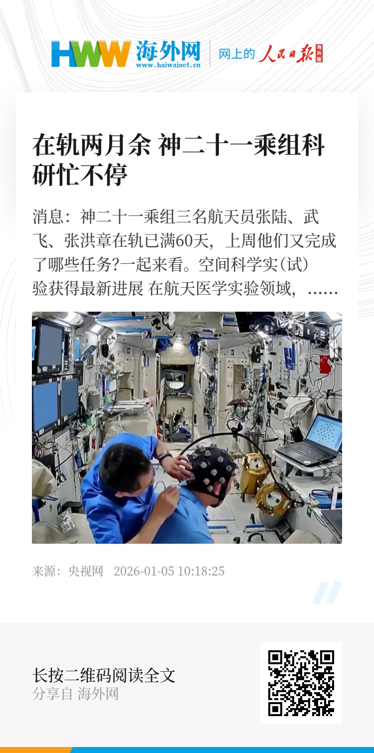 央视网消息:神二十一乘组三名航天员张陆、武飞、张洪章在轨已满60天,上周他们又完成了哪些任务?一起来看。