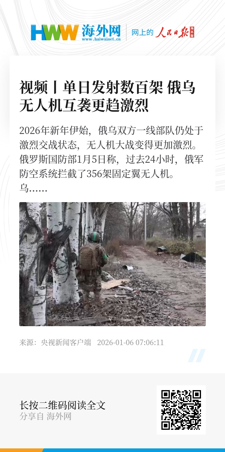 2026年新年伊始,俄乌双方一线部队仍处于激烈交战状态,无人机大战变得更加激烈。俄罗斯国防部1月5日称,过去24小时,俄军防空系统拦截了356架固定翼无人机。乌方则表示,自当地时间4日18时起,俄军用165架无人机袭击了乌克兰。
