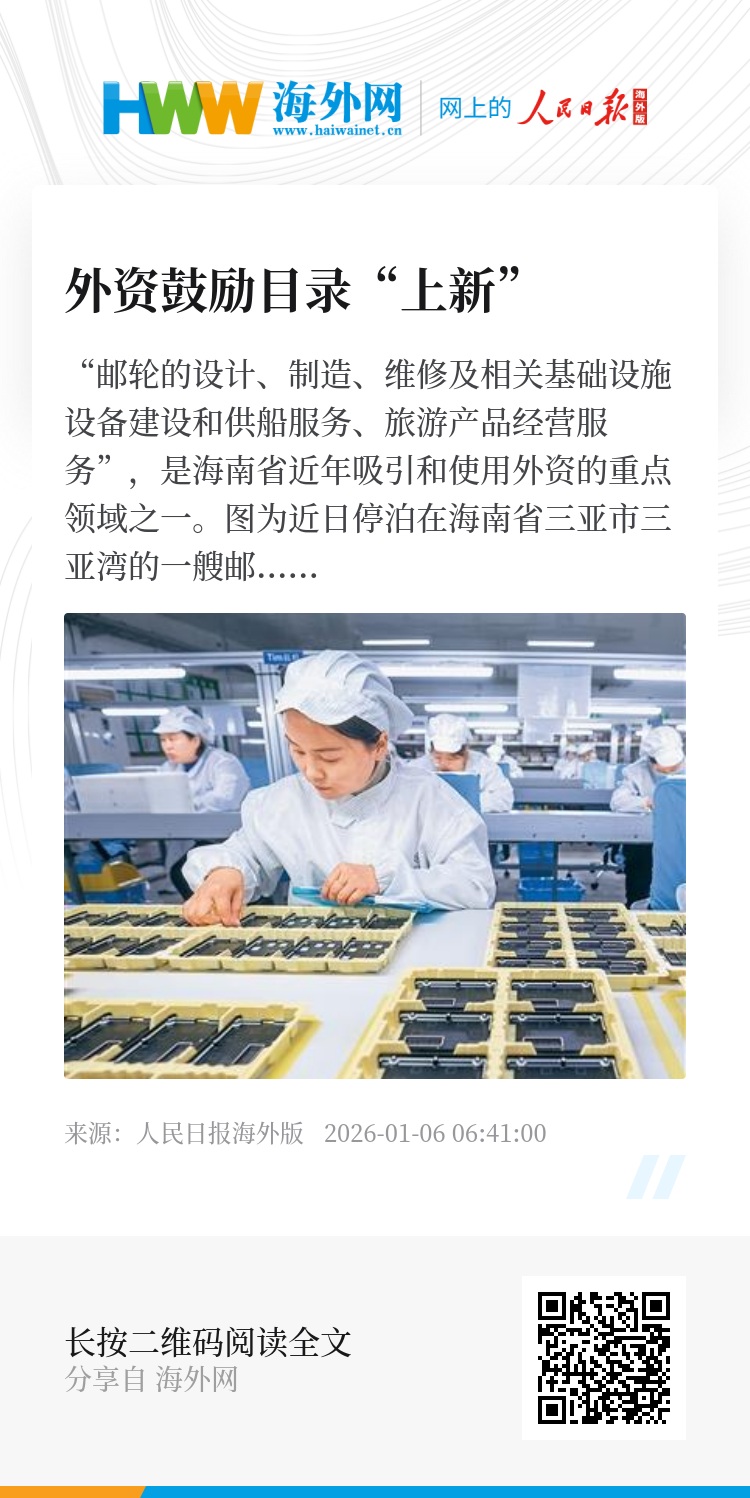 “修订扩大《鼓励目录》有效回应外资企业关切,优化对外商投资的方向性引导,是新形势下我国扩大开放的主动布局。外资企业将在中国更加繁荣开放的大市场中,深化与本土企业的产业链供应链务实合作,实现互利共赢、共同发展。”原倩说。(本报记者 汪文正)
