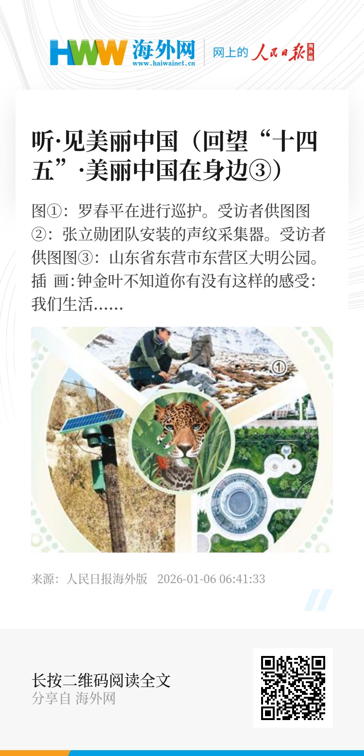 在城市里,寸土寸金的土地上建起了口袋公园,鸟鸣声、流水声声声入耳;在国家公园里,野生动物的叫声和风吹树林的声音汇成美丽的旋律......