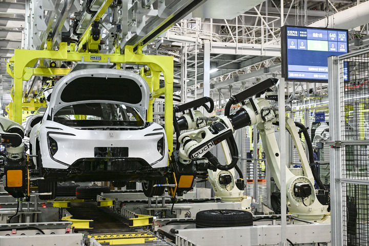 2025年3月6日在位于重庆的长安汽车数智工厂总装车间拍摄的自动化生产作业现场。新华社记者 王全超 摄