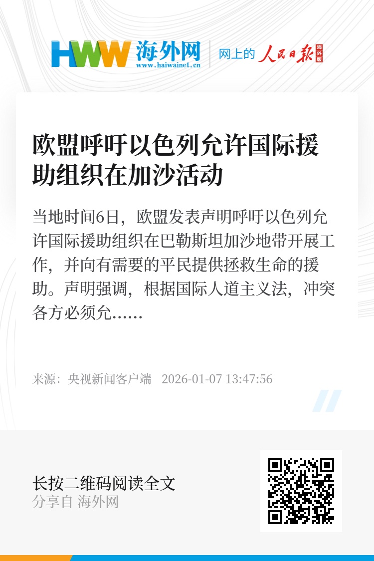 以色列政府此前宣布,自2026年1月1日起,对未按要求提交巴勒斯坦籍工作人员信息的多家国际非政府组织采取暂停活动措施。多家援助组织表示,以方的决定将严重影响对加沙地带的援助。