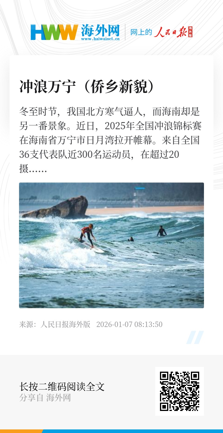 冬至时节,我国北方寒气逼人,而海南却是另一番景象。近日,2025年全国冲浪锦标赛在海南省万宁市日月湾拉开帷幕。来自全国36支代表队近300名运动员,在超过20摄氏度的温暖海水中乘风破浪,尽展身手。碧海蓝天之间,跃动的身影与涌动的浪花交织成一幅充满活力的冬日运动图景。