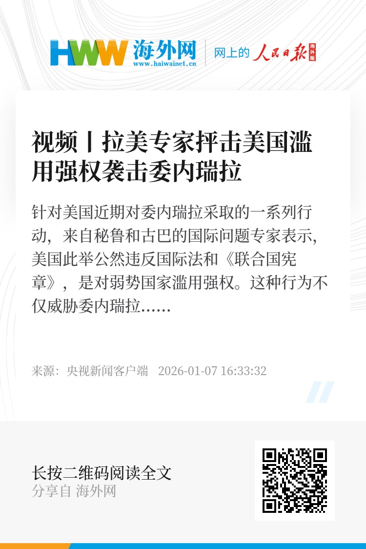 针对美国近期对委内瑞拉采取的一系列行动,来自秘鲁和古巴的国际问题专家表示,美国此举公然违反国际法和《联合国宪章》,是对弱势国家滥用强权。