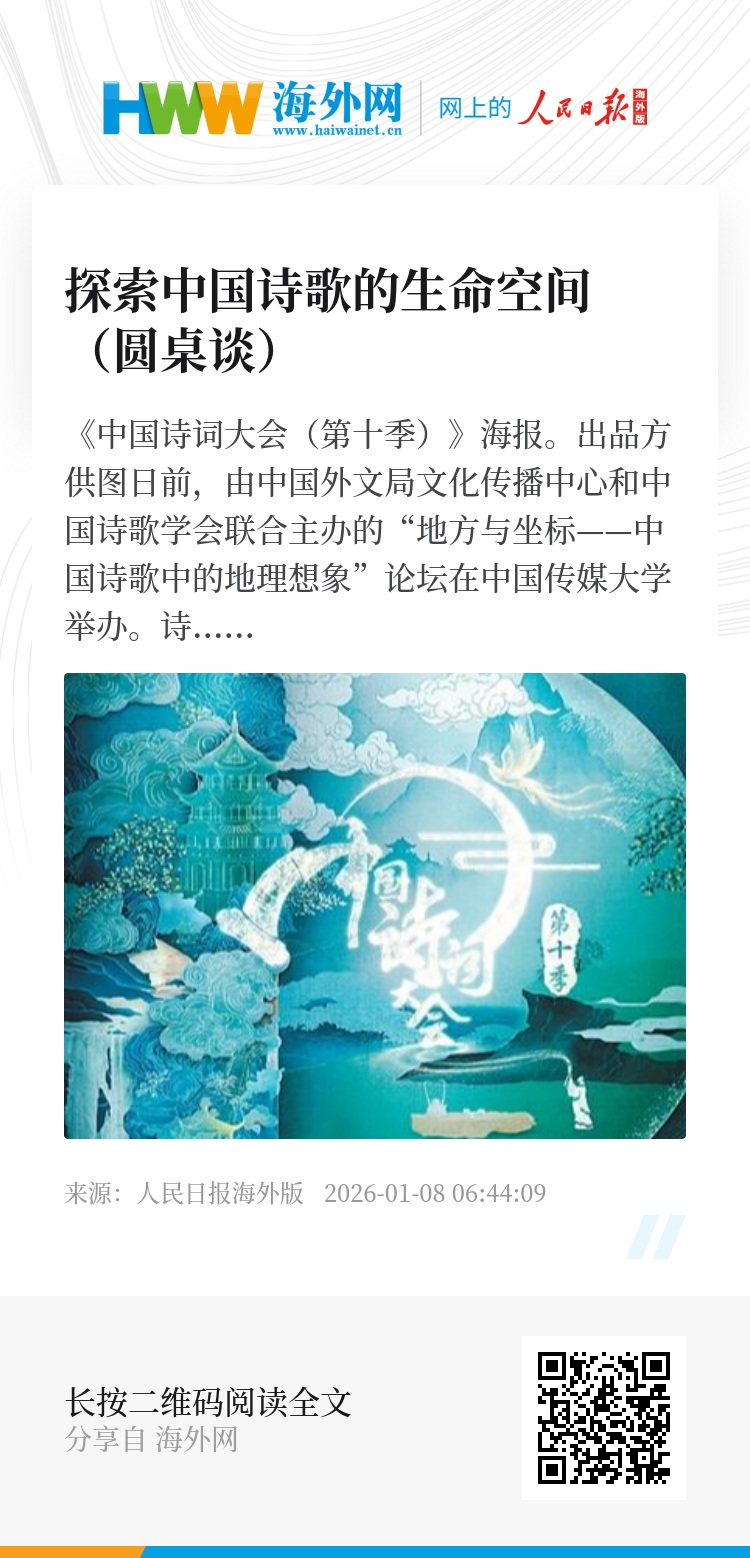 近年来,中国诗歌界、中国诗人开展的交流活动取得了积极效果,这表明诗歌这一交流媒介,是可以跨越国界、超越隔阂、唤起友爱、凝聚共识的文化纽带,同时中国诗歌在国际交流中也获得了新的营养。(本报记者黄敬惟采访整理)