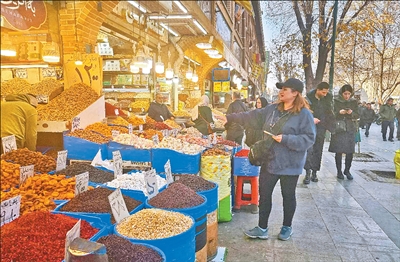 1月5日,伊朗首都德黑兰最主要的贸易市集——大巴扎里,一些店铺售卖的小商品琳琅满目,叫卖声、还价声交织在一起。商户卡齐米说:“我们的销量保持稳定,市场运转如常。希望通胀能够尽快缓解,经济得以恢复。”