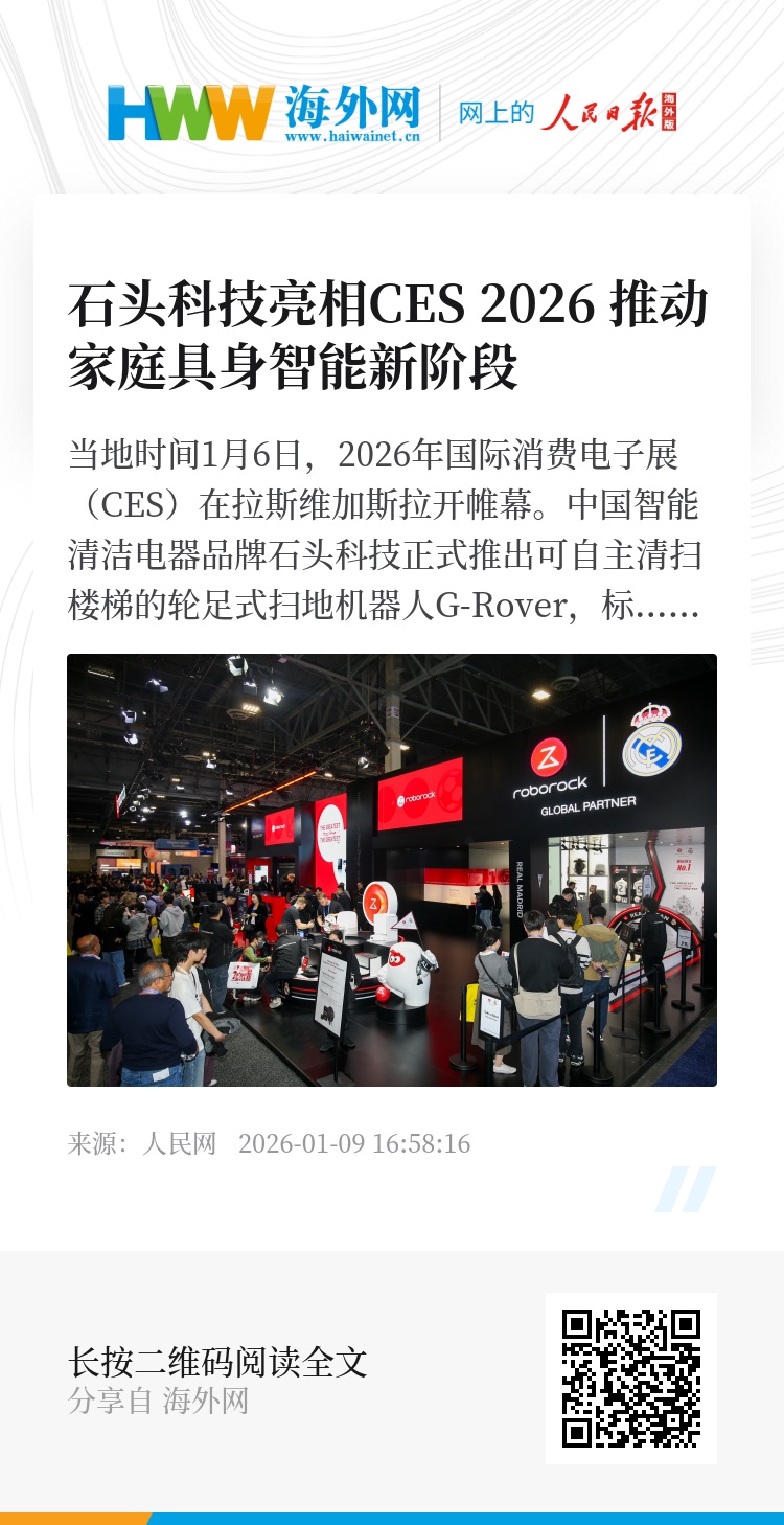 本届CES上,石头科技还展示了多款新一代清洁产品,包括搭载星阵领航系统的扫地机器人G30S Switch与超薄设计的G30S Pro,以及面向户外场景的割草机器人系列。企业同时宣布与西班牙皇家马德里足球俱乐部建立战略合作,共同推广智能科技与极致体验的理念。