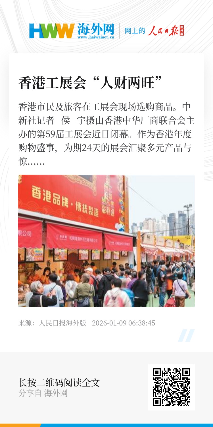 由香港中华厂商联合会主办的第59届工展会近日闭幕。作为香港年度购物盛事,为期24天的展会汇聚多元产品与惊喜折扣,融合丰富表演及多重活动,为市民及旅客打造难忘的消费体验。本届工展会共吸引约136万人次入场,较上届增加5%,并创下约10亿港元销售总额。