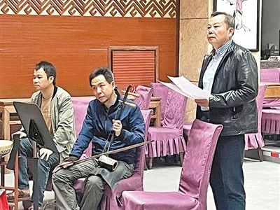今年61岁的谢谢曾担任广西戏剧院副院长,也曾任桂剧团团长、民乐团团长。2006年,桂剧被列入第一批国家级非物质文化遗产名录。谢谢是桂剧自治区级代表性传承人,也是广西桂剧董派唱腔音乐唯一的传承人。