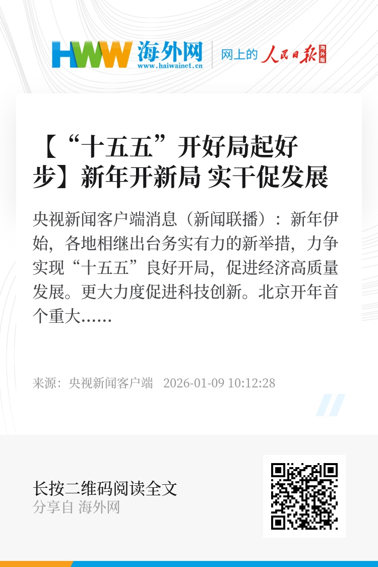 央视新闻客户端消息(新闻联播):新年伊始,各地相继出台务实有力的新举措,力争实现“十五五”良好开局,促进经济高质量发展。