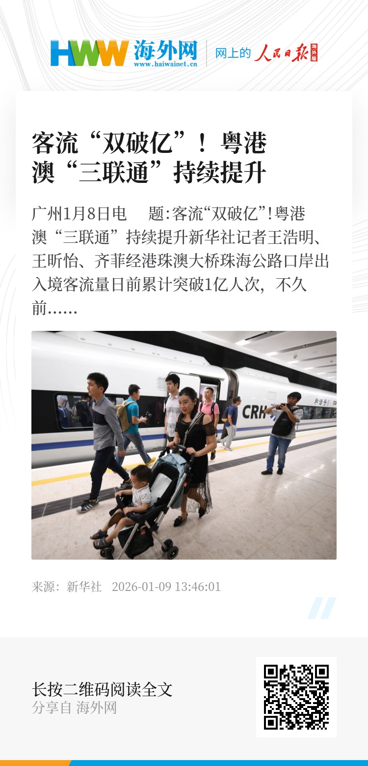 新华社广州1月8日电 题:客流“双破亿”!粤港澳“三联通”持续提升