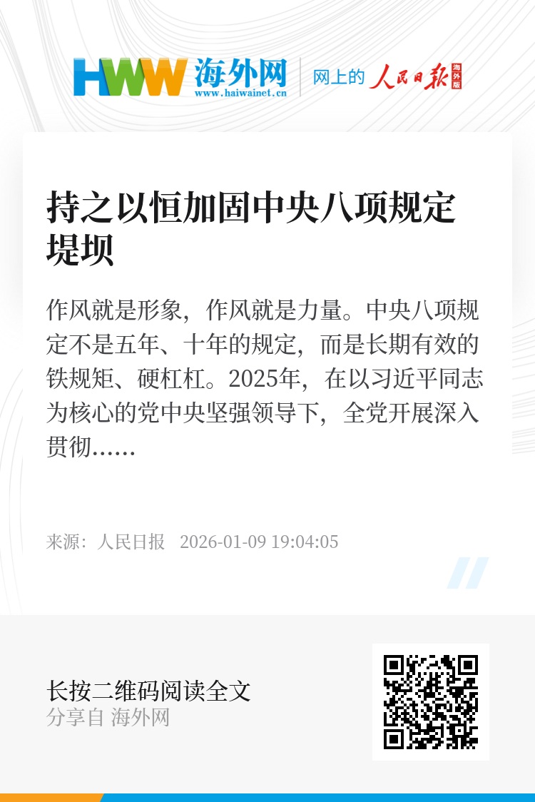 2025年,在以习近平同志为核心的党中央坚强领导下,全党开展深入贯彻中央八项规定精神学习教育。各级党组织和广大党员干部一体推进学查改,推动作风建设走深走实。中央纪委国家监委和各级纪检监察机关立足职能职责,紧盯“四风”顽瘴痼疾,深化整治形式主义为基层减负,健全风腐同查同治机制,推动党风政风持续向好、社风民风不断向善,中央八项规定更加深入人心。