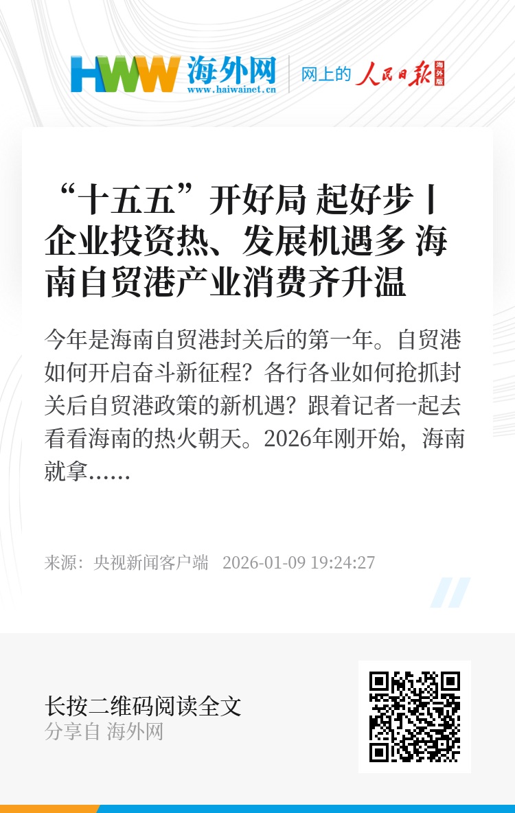海口海关数据显示,封关以来,海南新增外贸备案企业4396家;2025年全年,新增外贸备案企业3万余家,同比增长超四成。