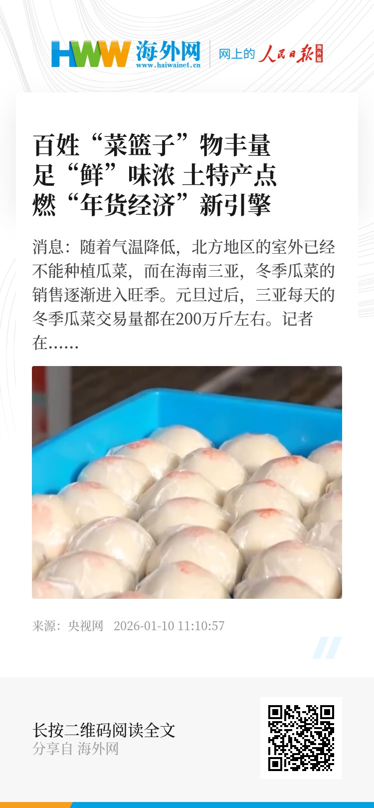 央视网消息:随着气温降低,北方地区的室外已经不能种植瓜菜,而在海南三亚,冬季瓜菜的销售逐渐进入旺季。元旦过后,三亚每天的冬季瓜菜交易量都在200万斤左右。