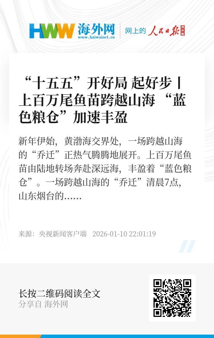 新年伊始,黄渤海交界处,一场跨越山海的“乔迁”正热气腾腾地展开。上百万尾鱼苗由陆地转场奔赴深远海,丰盈着“蓝色粮仓”。