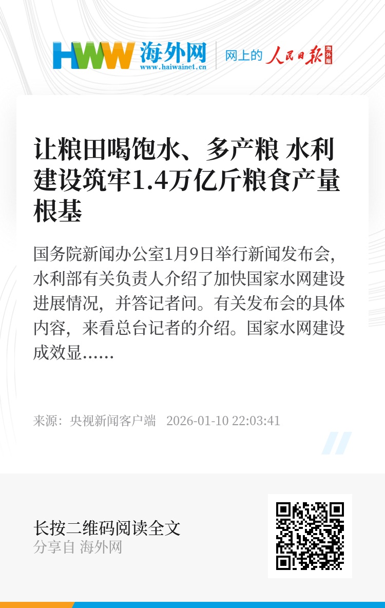 同时,种地灌溉更有保障,全国耕地灌溉面积超10.9亿亩,大型灌区经过改造,输水能力大幅提升,让粮田能够喝饱水、多产粮,为1.4万亿斤以上粮食产量筑牢水利根基。
