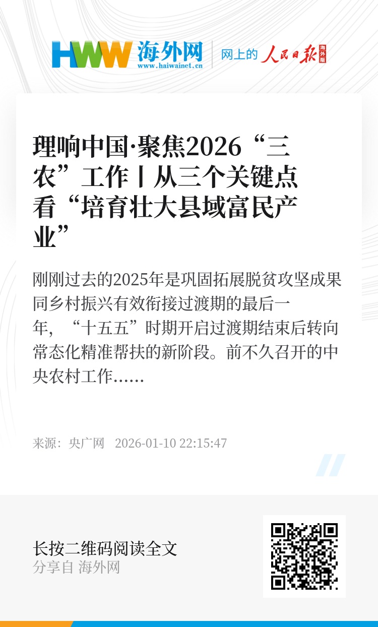 刚刚过去的2025年是巩固拓展脱贫攻坚成果同乡村振兴有效衔接过渡期的最后一年,“十五五”时期开启过渡期结束后转向常态化精准帮扶的新阶段。前不久召开的中央农村工作会议分析了当前“三农”工作面临的形势和挑战,部署2026年“三农”重点任务。会议强调,“培育壮大县域富民产业,拓展农民参与产业发展渠道和方式,健全联农带农机制”等。央广网约请相关领域专家深入解读中央农村工作会议精神。
