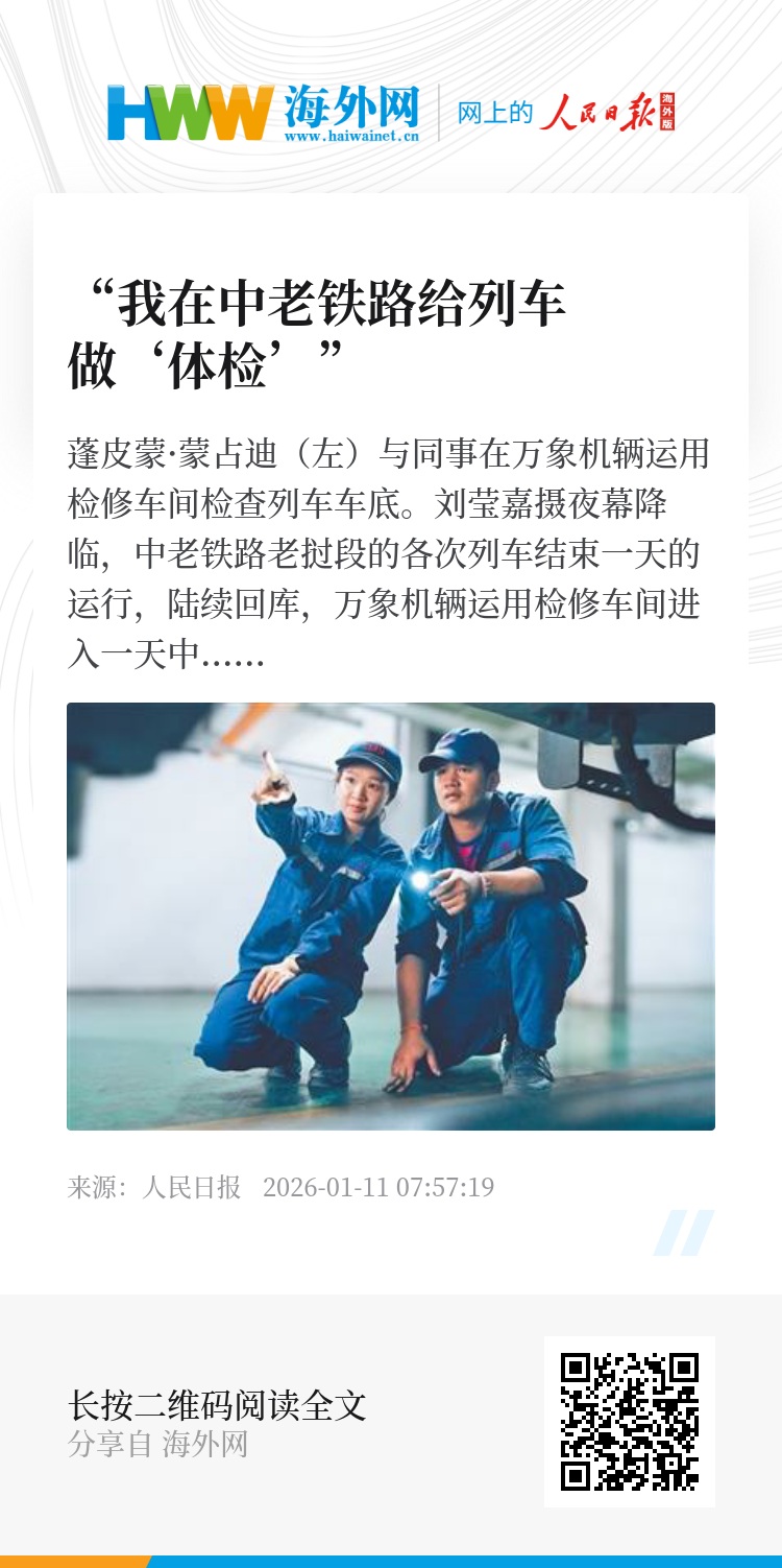 “我很感谢当初带我的中国师父们,他们不仅传授给我技术,也教会我对待工作、面对困难的态度。”谈及未来,彭梦雨说,她希望自己能像铁路上的前辈一样,“把自己的经验传授给年轻职工,帮助更多人喜欢并扎根在这个岗位上,成为女性技术工人的榜样”。(本报记者 杨 一)