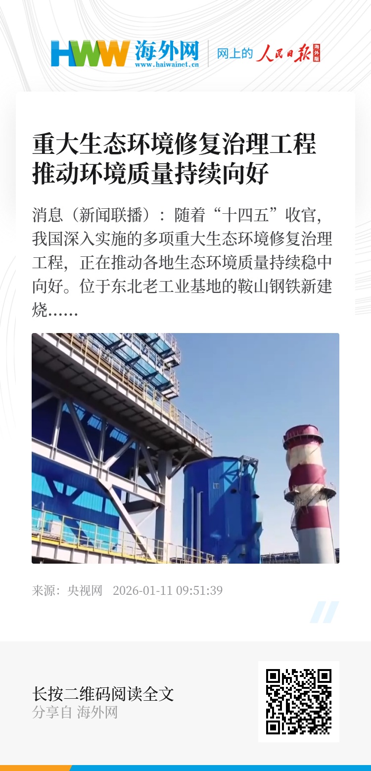 央视网消息(新闻联播):随着“十四五”收官,我国深入实施的多项重大生态环境修复治理工程,正在推动各地生态环境质量持续稳中向好。