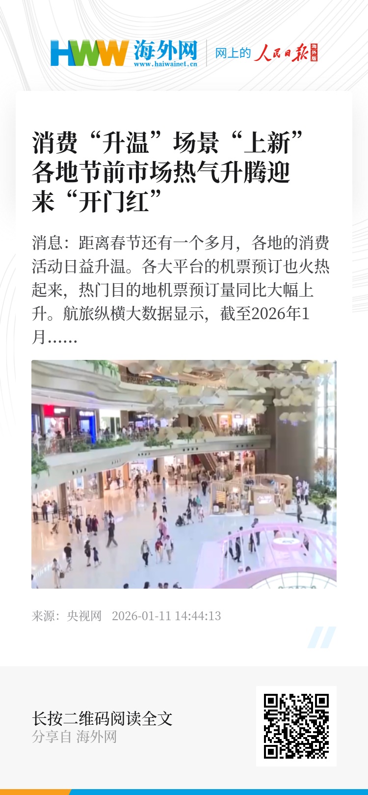 央视网消息:距离春节还有一个多月,各地的消费活动日益升温。各大平台的机票预订也火热起来,热门目的地机票预订量同比大幅上升。