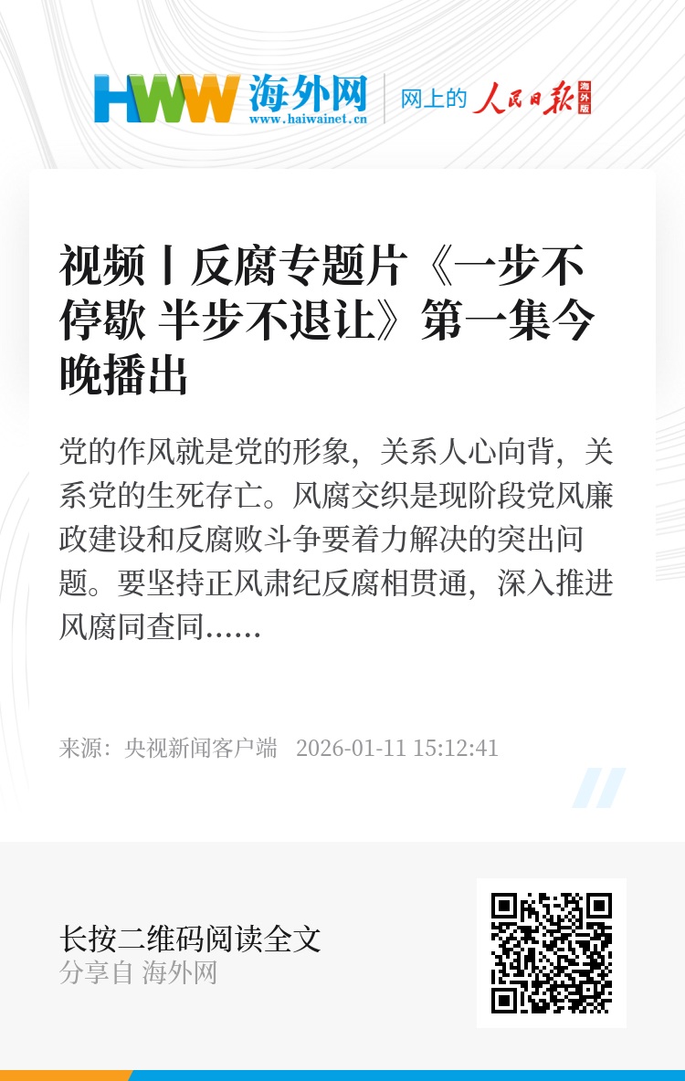 电视专题片《一步不停歇 半步不退让》第一集《纠风治乱为民》,讲述纪检监察机关不断加大风腐同查同治力度,锲而不舍落实中央八项规定精神,严肃查处违规吃喝背后的团团伙伙、请托办事和利益输送,集中整治群众身边不正之风和腐败问题,让群众真切感到正风反腐加力度、清风正气在身边。总台央视综合频道1月11日晚8点档播出,央视新闻新媒体平台同步播发。