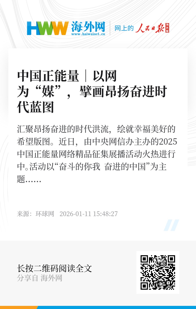 征途漫漫,惟有奋斗。几多风雨,几多磨砺,那些平凡而伟大的奋斗已经镌刻在历史的长卷中,为奋进“十五五”、追梦新征程提供着强大的精神力量。当然,发展没有休止符,一直在路上。中国式现代化的新征程上,每一个人都是主角,每一份付出都显得弥足珍贵。借助中国正能量网络精品征集展播活动,以积极健康、向上向善的网络文化滋养人心、滋养社会,也将激励14亿多中华儿女把奋斗精神融入岗位、融入日常、融入人生,在全面建设社会主义现代化国家新征程上携手同心创造新的更大奇迹。(甄幸)