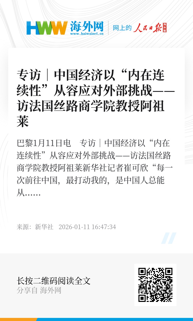 新华社巴黎1月11日电 专访|中国经济以“内在连续性”从容应对外部挑战——访法国丝路商学院教授阿祖莱