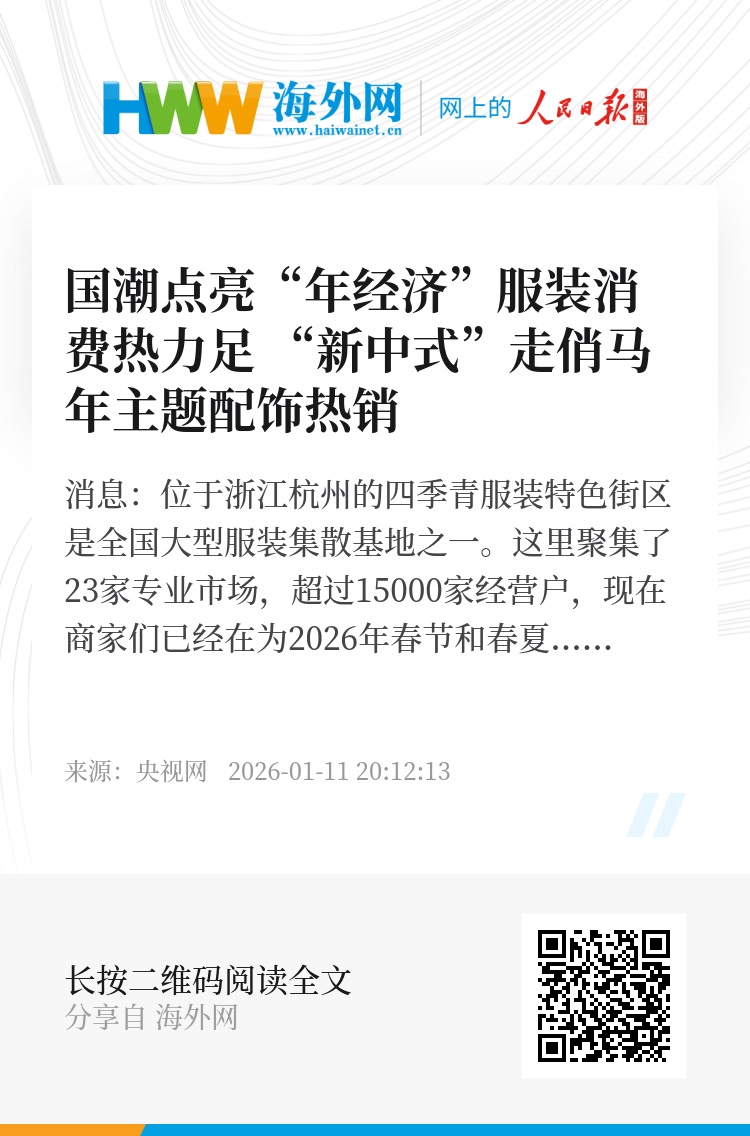 央视网消息:位于浙江杭州的四季青服装特色街区是全国大型服装集散基地之一。这里聚集了23家专业市场,超过15000家经营户,现在商家们已经在为2026年春节和春夏季销售而忙碌了。童装是“四季青”的重要品类之一,这里仅一家童装城的年销售量就有约2000万件。现在童装销售有什么新趋势?这个传统批发市场又有哪些新变化