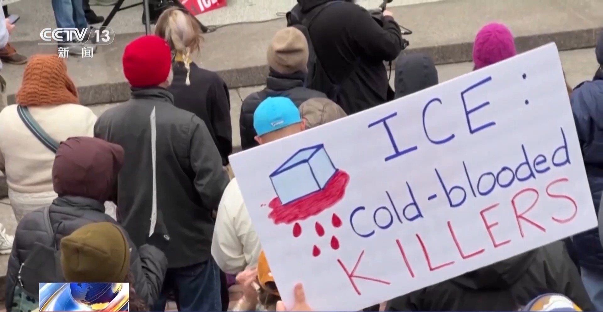 示威者:我认为我们聚集在这里,是因为我们看到移民与海关执法局,并不是一个严肃的公共机构,它并没有让我们更安全。人们今天不仅是为蕾恩·古德的家人抗议,要求正义,也是要求废除移民与海关执法局。